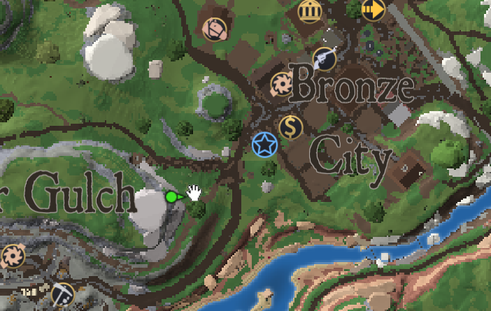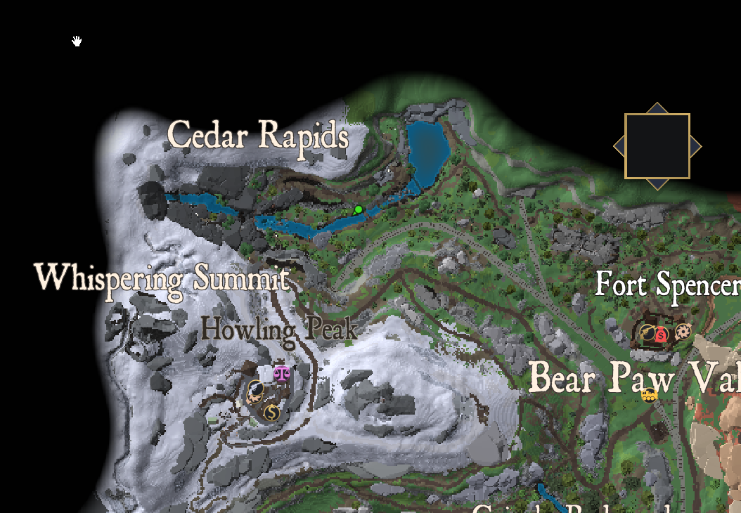 | Boone Carter | From Puerto Dorado I set off to head north adventurin'. Along the way, I crossed paths with a band of outlaws intent on takin' what I had. I lit out quick and stumbled onto a land split by the Good Lord himself. In my haste, I shoved my gear under a log as a roar echoed nearby. Retrace my steps and fetch my stash for me, would ya? | Bear Paw ValleyBear Paw Valley | ![]()