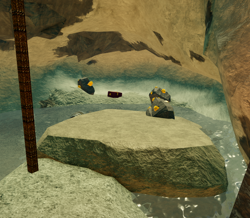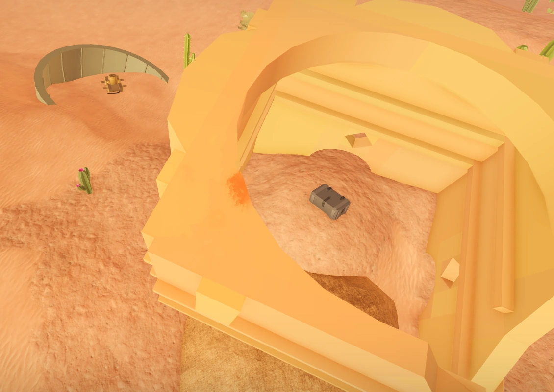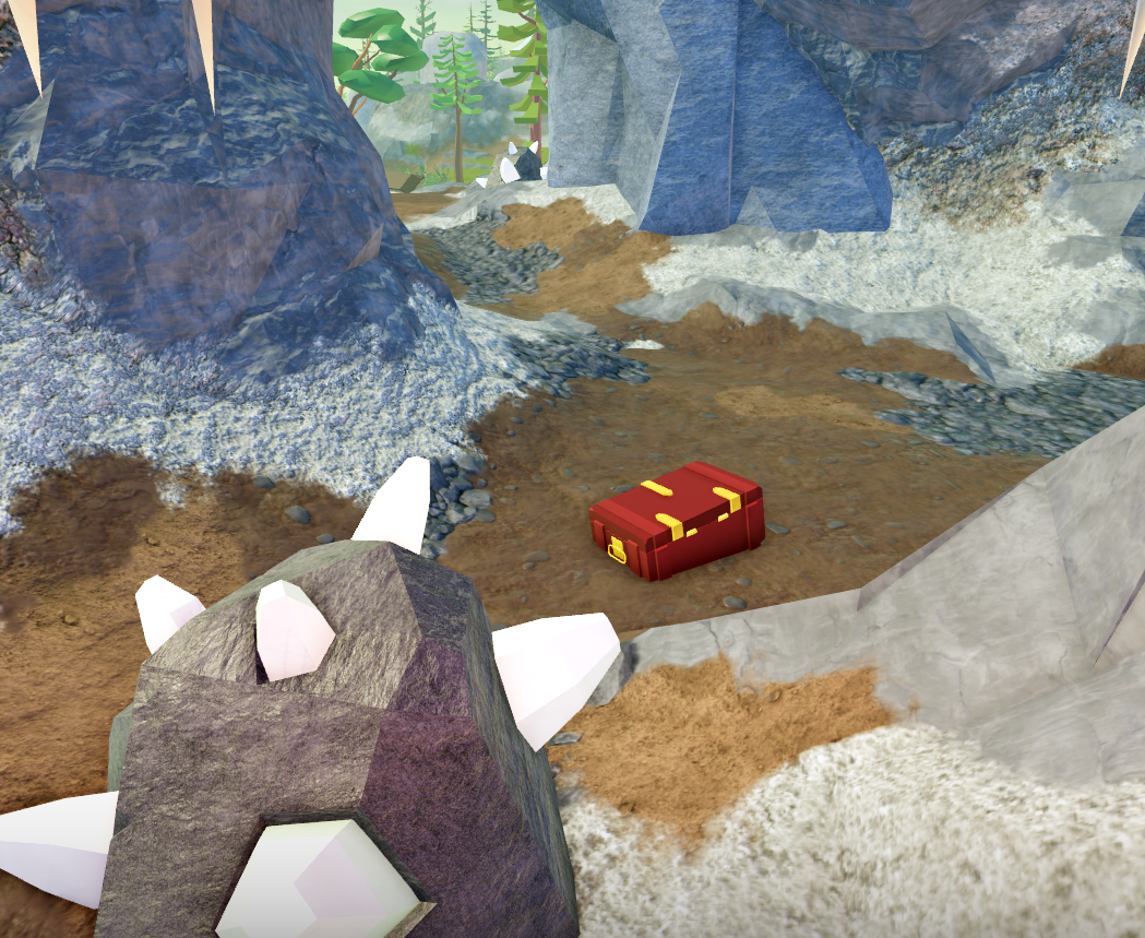 After reaching the general area indicated by the clue, it may take several digging attempts to locate the treasure. When the correct spot is found, the Clue Scroll disappears and a chest briefly appears. Successful digging is accompanied by metallic clanging and thud sounds, simulating contact with the chest — a noticeable contrast to the softer sound of digging in plain dirt. To fully unearth the treasure, players must dig about five more times in the same location. Once revealed, the chest can be unlocked by holding [E] for five seconds. After being looted, the chest sinks back into the ground and disappears.