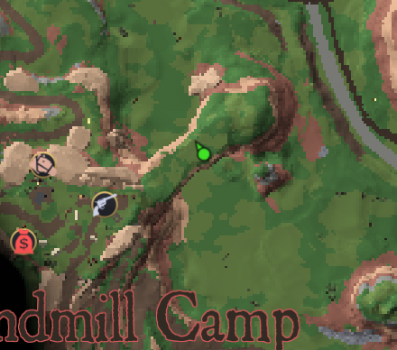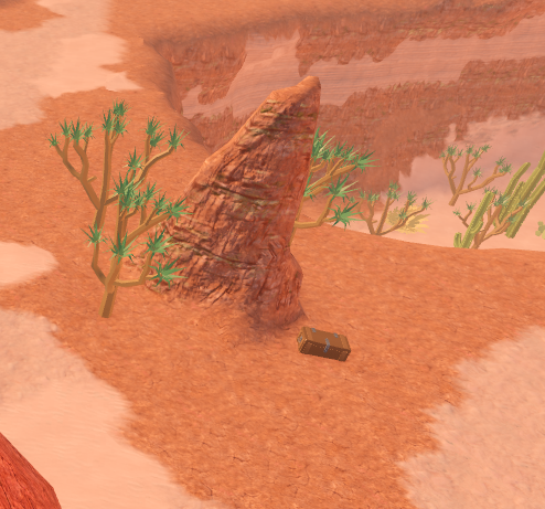 If you're lookin' for a good spot to camp out, I'd recommend an old road that winds through the canyons, a path not often taken by folks. Follow it down a ways 'til you come across a small hidin' spot that's just perfect for a cozy fire. If you're feelin' a mite curious, you can dig up the sand and find my trusty ol' box, filled with all sorts of handy supplies. |